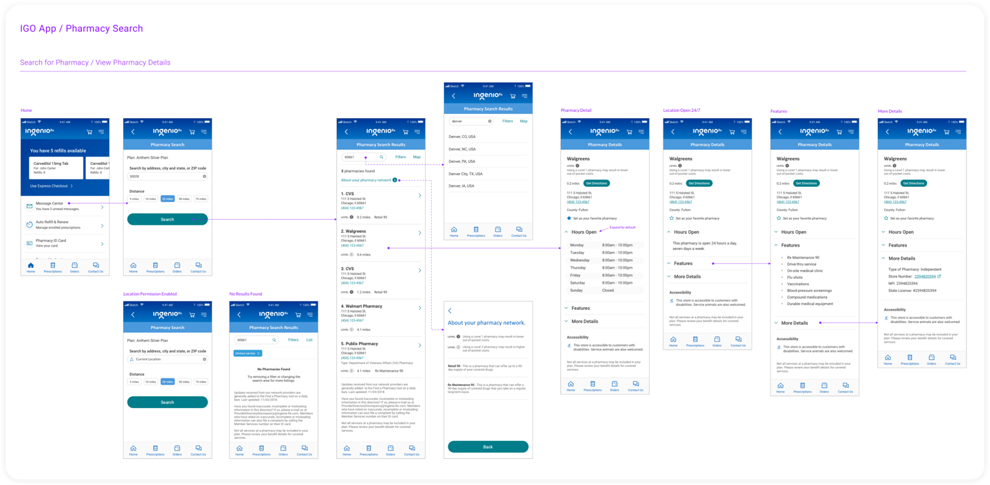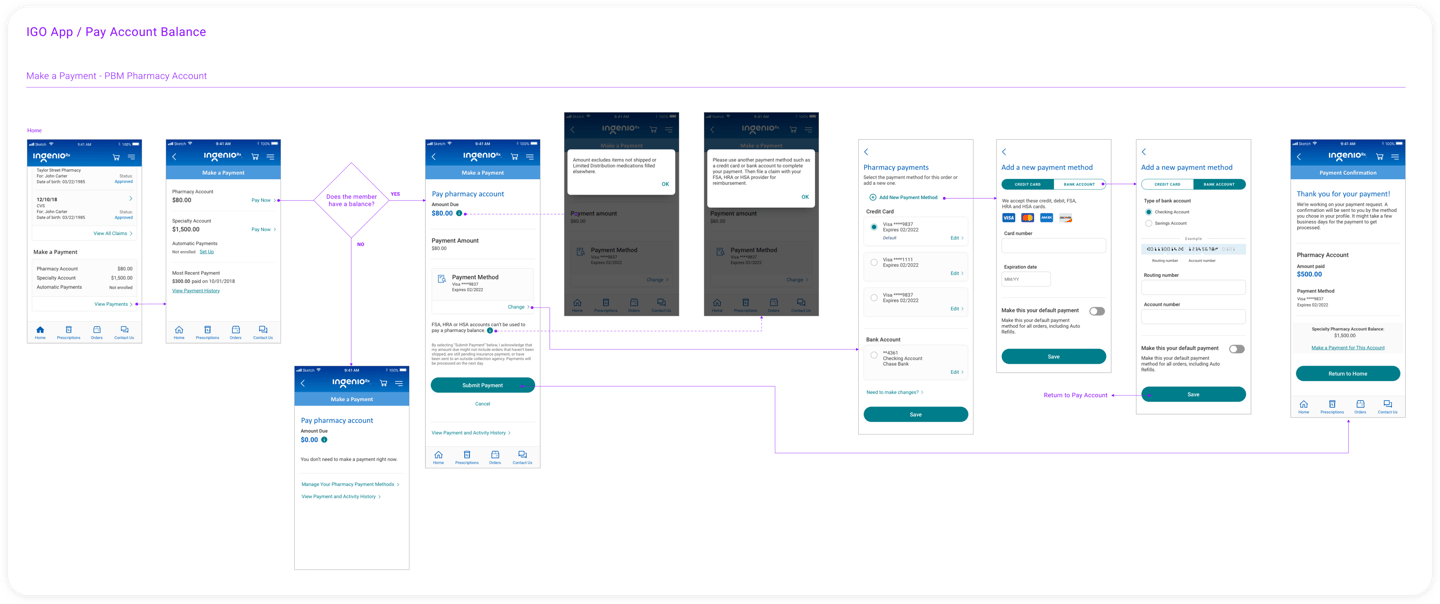 As a UX Lead, I created an user-friendly and long lasting design where members can navigate their tasks easily. Intuitive UI helps members pay bills and find a pharmacy in just a click away. I provided user flows to help stakeholders understand how users navigate and interact with the features. I partnered with the business and research team to develop a testing plan to iterate our designs.