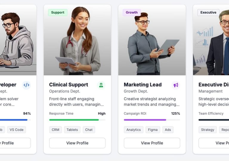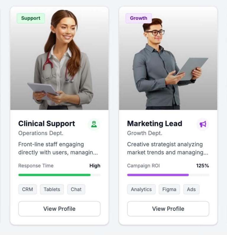 Persona-Driven Design: Tailored dashboards and navigation for Developers, Clinical/Support staff, Marketing, and Management.