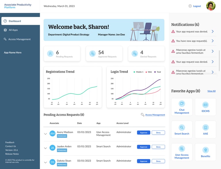 Inefficient internal tools directly impact enterprise productivity, increase training overhead, and risk miscommunication across teams. A unified platform was critical to reduce cognitive load, accelerate workflow completion, improve cross-department collaboration, and provide reliable data insights for leadership decisions.